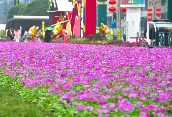 2022年春节前夕,二十万株新品种乡土特色花卉“小报春”亮相天府广场。