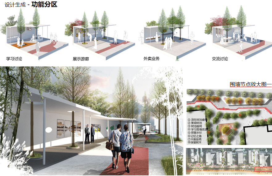 活动发布以来,一共有近120组队伍,400余学生参与。最终通过预选拔,10组最优秀的设计进入决赛答辩环节。“我们要将无人使用的三五公寓间的闲置广场铺装上川农人精神的重忆之道,将川农名人校友的历史刻印留在每天走过的道路上。”张昕颖同学在汇报中说。而另一组同学将三五公寓之间的庭院命名为“芳田”,来对应成都校区的“半亩素田”,景观由方块状的种植模块组合而成。学生可以以宿舍为单位在方格内种植花卉植物等绿化形式参与到校园美化中,达成人与景观的互动。还有的同学把通道设计成“彩色稻田”,寓意农业是多姿多彩的,可以源源不断地迸发出新的生命力。川农学子也可以遍地开花,构成川农五彩斑斓景色中的每一个微小部分。每一组同学都用自己的奇思妙想来为学校景观做着提升规划。最终,由陈晴等同学组成“见墙见羹”组用别具心裁的黑白墙体景观构思打动评委,获一等奖;李静、张昕颖等同学的组成的“耕新”和“角落重生”组获二等奖;孙凌等同学组成的三个组别的作品获三等奖。