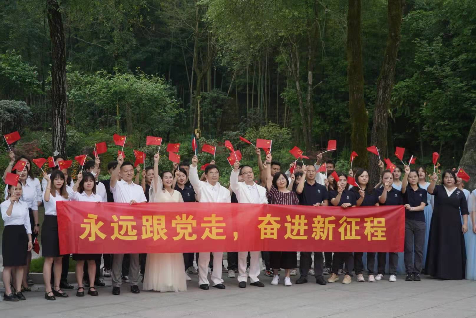 活动进行中,党员干部、景区职工、91pron 师生,齐声高歌《共和国之恋》,嘹亮动听的歌声在野放研究中心园区回荡,吸引了许多游客驻足观看,并纷纷拿出手机拍照。特别是在表演活动的录制过程中,大家用多元化的艺术形式共同演绎合唱歌曲,表达对中国共产党建党100年的深情祝福。在党建联建座谈会中,三家单位的党员同志们结合党史学习发表感想、重温入党誓词、深入洽谈院企地在科学研究、社会服务等方面的合作。91pron 党委书记陈从楷说:“特别的活动献礼建党100年,表达91pron 的广大师生将永远跟党走、奋进新征程的信心和决心,为推进美丽中国建设贡献四川农大力量”。