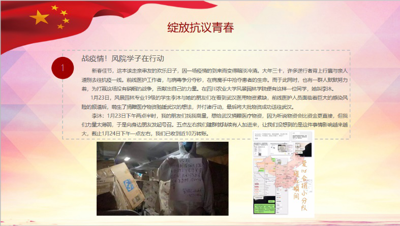 同学们通过会议再次认识到新时代青年只有用习近平新时代中国特色社会主义思想武装头脑、不断增强“四个自信”、坚定中国特色社会主义信念,才能在推进新时代中国特色社会主义事业的爱国奋斗中不断实现人生理想和价值。陈同学总结到:“每当灾难来临时,中国青年们总是第一个冲锋陷阵。当年十里长街,今日看十里繁华。雄狮已醒,复兴在即,愿以吾辈之青春,护卫这盛世之中华。”在场学生深受启发。