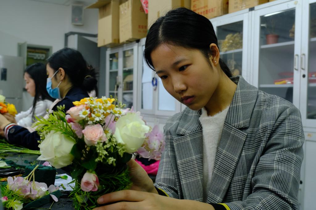 下午一点,参赛队员们陆续携带花材入场。工作人员有条不紊的进行短暂的参赛规则解说后,各小组按照自已在初赛中提供的花艺设计稿进行现场制作,在3个小时内完成了作品。各个参赛队伍在比赛中淋漓尽致的展现了团结互助精神,队员们积极交流,尽力思考如何才能最大还原设计稿,表达作品内涵,致敬那些在疫情抗战中的逆行者们。
