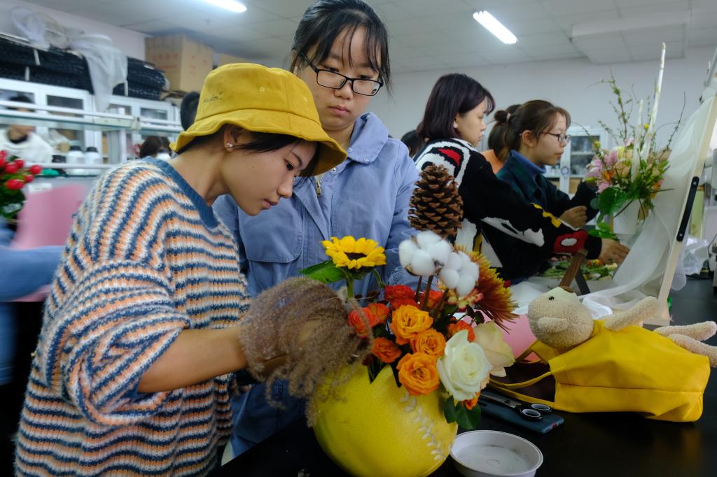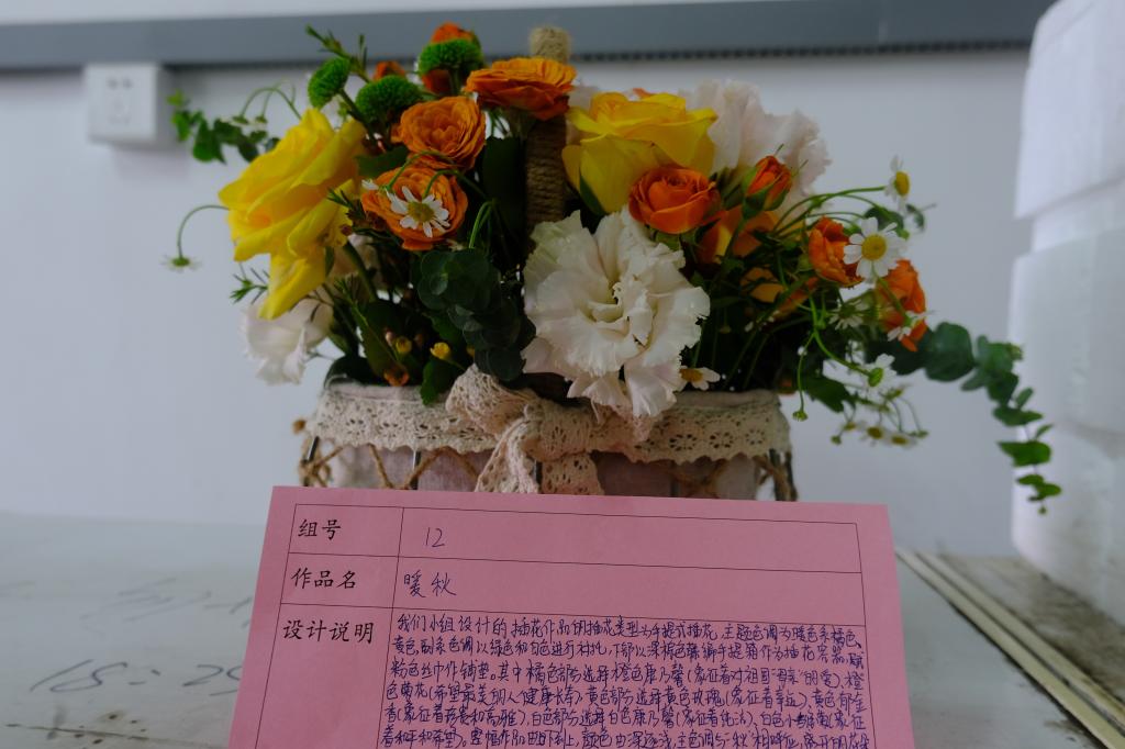 所有完成的作品整齐陈列在实验室中,由专业课教师潘远智教授、江明艳教授、姜贝贝教授进行现场评分。评委老们从作品完成度,色彩搭配,花材形态,创意及作品内涵等方面对参赛作品进行了点评。20个小组的参赛作品脱颖而出,这些花艺作品将在11月2到4日于成都校区图书馆进行展览和微信线上大众投票。评委老师分数和大众投票分数将按比例进行折算,最后决选出入围决赛的15支队伍。