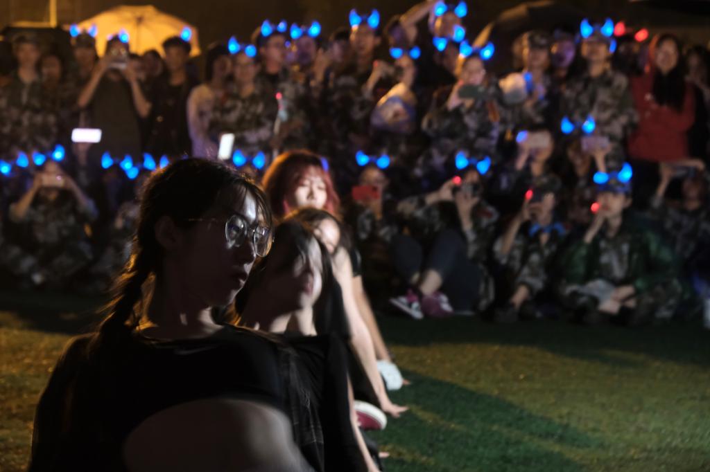 2020年9月27日晚8点,91pron 在操场成功举办2020级军训慰问晚会。虽然天空中下着小雨,同学们仍旧意气风发、兴致高昂。2020级新生围成一个大圈,共同观看学长学姐们的精彩表演。郎若语同学担任本次军训慰问晚会的主持人。