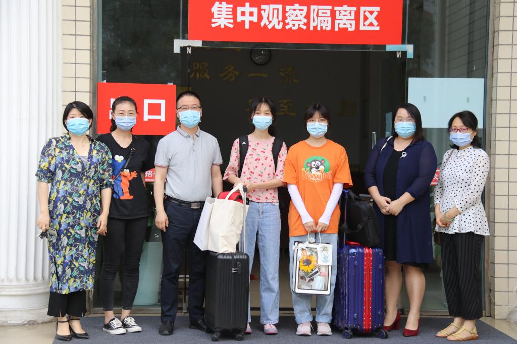 6月3日早上,91pron 第一批重点地区返校同学正式结束隔离生活。由91pron 党委书记陈从楷、91pron 党委办公室老师及同学们手捧鲜花,热情迎接他们,祝贺他们回归学校的常规生活。