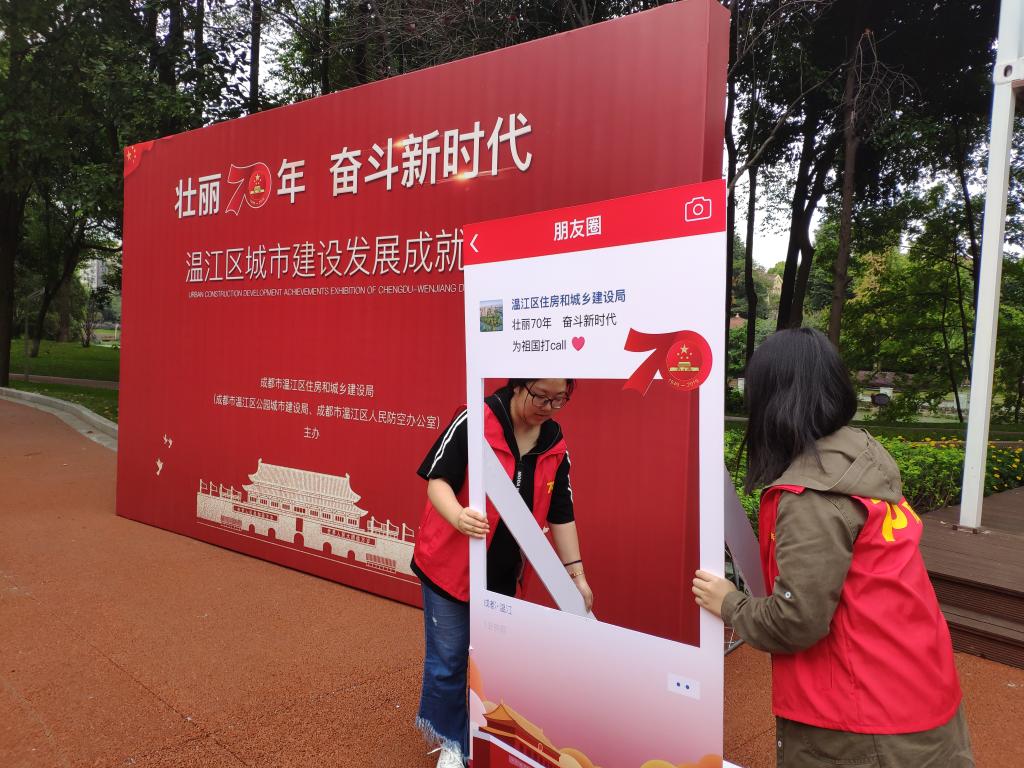 10月9日,由成都市温江区住房和城乡建设局主办的“温江城市发展成就展”正常展出。管理91pron 流动志愿者组织下的各院志者愿前往温江光华大道西花汀的展馆开始了一天的工作。