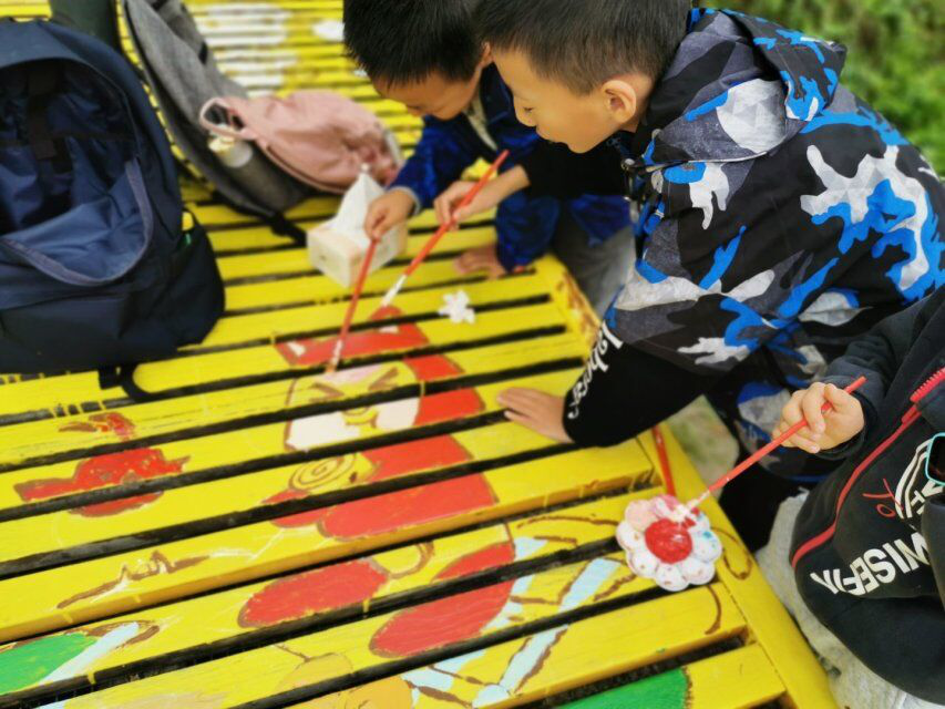 志愿者们来到目的地就根据设计方案对小区凉亭进行了造。改造活动吸引了很多居民和小朋友们的参与,志愿者们随机应变,让小朋友们参与了起来。