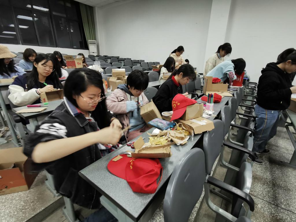 11月17日晚,91pron 四教A栋203的教室前排,整齐地堆满了废弃的快递盒。原来,这是91pron 青年志愿者协会5名成员协同流动志愿者31名,开展的“手工改造,环保公益”志愿公益活动。志愿者们以想象为材,色彩为依,制作出各种精美的小礼品,环保再次利用的同时,也为八一康复中心的孩子们和老年公寓的爷爷奶奶们,送上了冬日温暖的祝福。