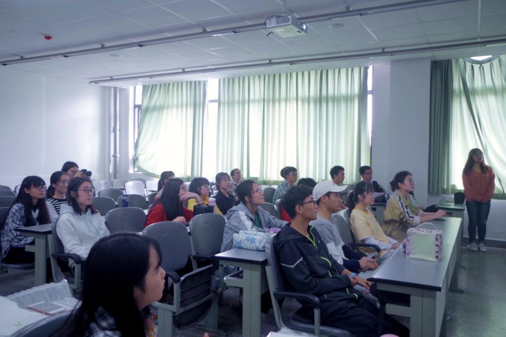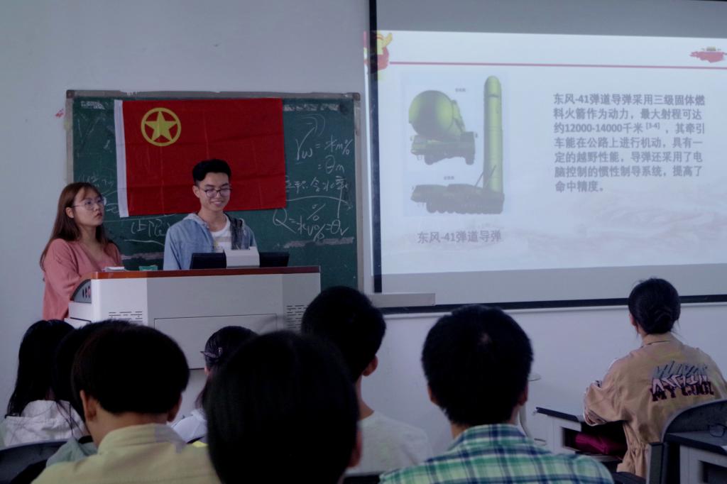 “我们是五月的花海,用青春拥抱时代。”团歌声拉开了本次活动的帷幕。嘹亮而高亢的歌声激荡在教室的每个角落,一张张青春的面孔上充满了自豪与坚定。随后两位主持人用图文并茂的幻灯片带领大家共同感受建国以来祖国取得的成就—歼20、C919、天眼FAST……年轻的新中国也是人才辈出的中国—被誉为“水稻之父”的袁隆平、取得诺贝尔医学奖的屠呦呦,所谓老骥伏枥不正是他们的代名词吗?正青春的同学们也该以他们为榜样,用高标准来要求自己,向为国家作出杰出贡献的他们学习。