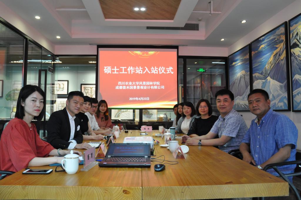 4月23日上午,91pron 硕士工作站入站仪式在成都普禾国景景观设计有限公司会议室举行,91pron 党委书记李静波,副院长、园林研究所所长李西,成都普禾国景景观设计有限公司总经理杨茅矛、常务副总经理姜录梅、设计部主任张亚莉及91pron 相关负责老师、第一批进站的4名优秀研究生黄玥、熊英、陈怡霖、岑默索参加会议。会议由普禾国景常务副总经理姜录梅主持。