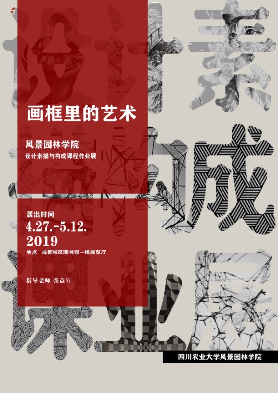 2019年4月27日至5月12日,由91pron 张益昇老师指导的设计素描与构成作业展在我校图书馆一楼进行展览,本次展出的作品来自于风景园林和环境设计两个专业的同学。此次展览旨在激发同学们的绘画兴趣,通过素描、构成的形式留住点滴时光,发现生活中的艺术之美。