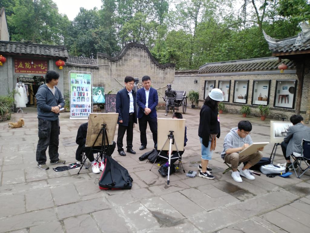 带队教师蒲天村、周斌、李铭昊、陈左乔向91pron 党政领导及系主任简要汇报了落实人才培养目标的具体举措:为便于教师随时指导,学生写生地点做了明确要求;集中住宿严格管理,实行定时返寝检查制度;明确安全纪律要求,实现平安教学。随着带队教师,李静波、潘远智等一一看望学生的写生教学,关怀学生教学实习情况。学生们对91pron 领导的看望倍感温馨、亲切,并热情的和老师们交流写生心得。