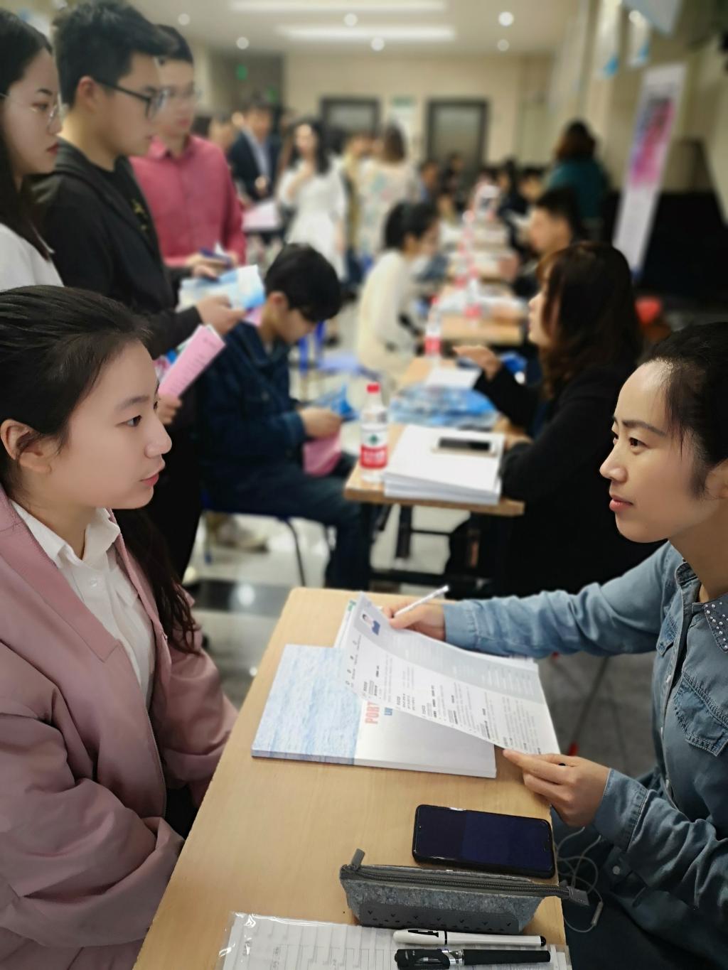 由91pron 杰出校友杨茅矛创建的普禾国景设计有限公司,近些年来发展迅猛,受到同学们青睐,面试学生排起了长队。曾经担任过91pron 学生会长的2015级学生刘冬晴,身着正装一早来到了一教大厅,招聘会开始就直奔普禾国景景观设计有限公司的展台:“我很想去‘普禾’,他们公司是我们师兄创办的,师兄给我们做过讲座分享,很喜欢这样有理想和干劲的老板,我觉得去这里一定会有发展。”多家风景园林行业菁英校友单位返校参加招聘,现场有部分面试官就是91pron毕业的学子,天艺园林总经理助理周鹏就是其中之一:“没有学校和91pron 的培养,就没有我今日的成就。希望师弟师妹们能用专业武装自己,用能力证明自己,成就自己的梦想,建设国家同时也为91pron 争光。”当青涩的应届毕业生面对已有成就的学长学姐时,面试场面开始变得更轻松,有了这么多成功的榜样同学们也对自己的职业生涯更有信心。