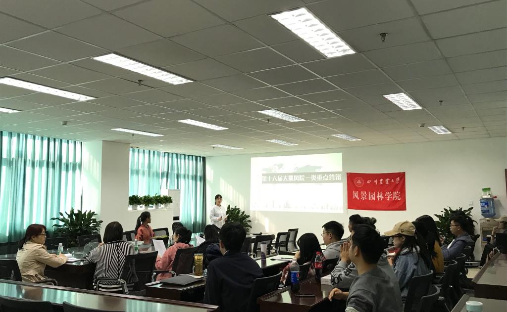 本次答辩会共有十个团队,分别是《边坡生态防护模块》、《道教文化在川派盆景中的应用》、《迷你岩桐的组培及快繁体系研究》、《四川省自贡市盐商建筑遗存现状调查》、《药用景观植物蓝花丹高效繁育与白花丹素含量提升技术》、《白花虎眼万年青NPY和CIGR基因对水稻和花卉的遗传转化研究》、《乡村“体育+”带动川西林盘振兴的研究——基于景观设计视角》、《成都市街道家具设计与巴黎街道家具设计的对比探析》、《装配式户外空间》、《海绵城市屋顶雨水利用生态模块项目》。虽然十个团队的年龄与擅长领域不同,但都为我们带来了精彩的项目展示。