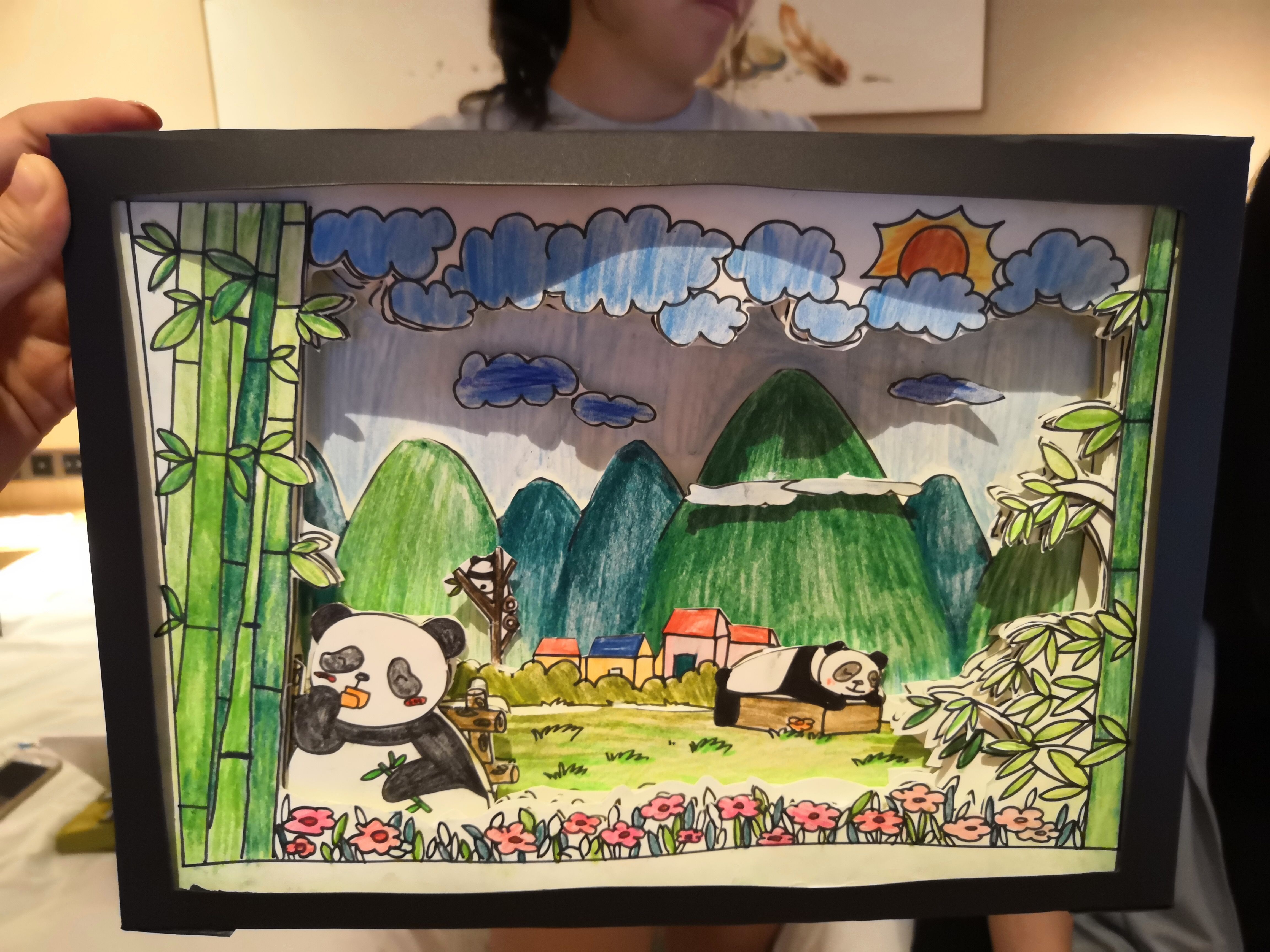 两岸学子分为多个小组,以“教育”为主题,围绕熊猫设计并制作了多套针对小学生的教学作品。精心设计的立体画、色彩斑斓的大熊猫学习手册、精美的大熊猫活页卡通故事书、精彩的大熊猫纪录片、有趣的大熊猫飞行棋等。同学们把这些天学习和观察的大熊猫知识结合自己的想象力开发出了这些寓教于乐的教学用具,其精美程度堪比很多成品教具。发布会上他们不仅仅认真展示了设计的作品,不约而同的都谈到了自己的依依不舍,两岸学子在短短十几日中建立了深厚的情谊。