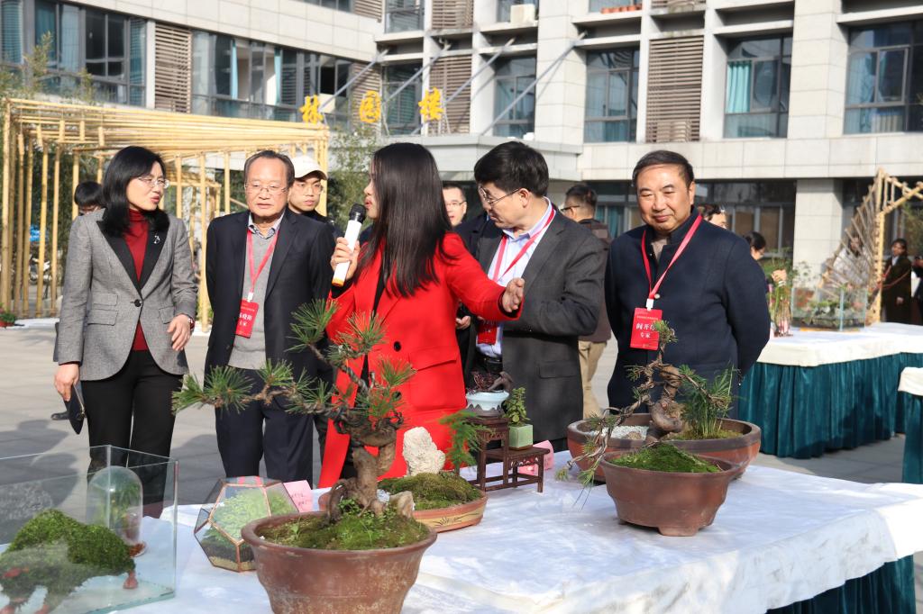 接着十余组学生插花作品带着芳香进入专家视野,。这个展区由91pron 插花艺术授课教师、91pron 生态康养研究中心主任杜娟介绍。其中一组由农产品组合的花艺作品吸引了专家组的眼球,该作品以丰收为主题的一个大的架构插花,该作品的名称是:“满眼丰收意,一腔川农情”,作品借助场地已有的铁架为构架,采用具有川农专业特色的材质:小麦、水稻,玉米,南瓜等粮食作物;表面上看表达的是五谷丰登的秋收场景,实则是表达了川农学子热爱专业,埋头苦干,在川农收获了知识,收获了成长,学在川农,爱在川农的一腔浓浓川农情。同时这个作品也彰显了川农学子爱国敬业、艰苦奋斗、团结拼搏、求实创新的川农大精神。