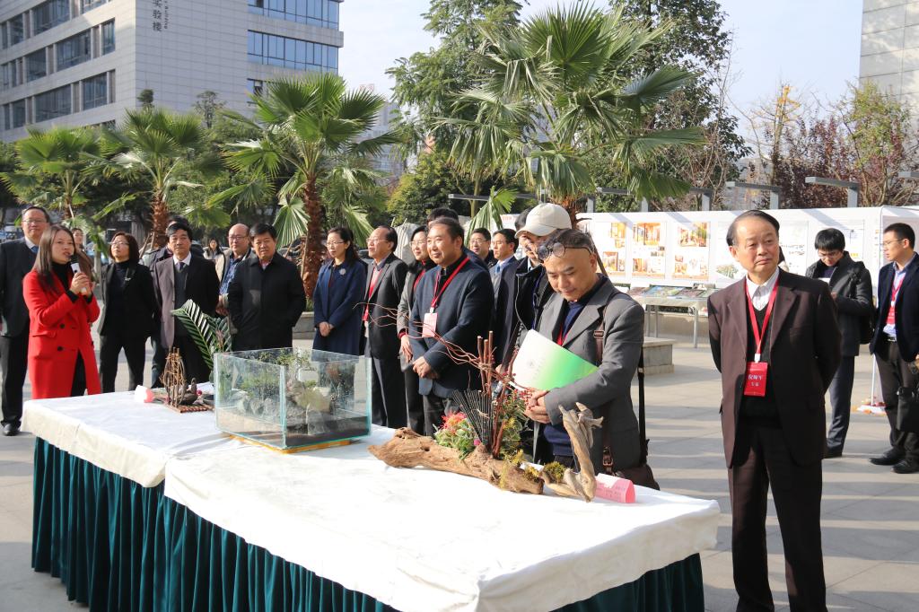 12月3日,9点55分。本科教学评估专家组及校领导到达五教中庭处,考察了91pron 学生设计作品展区,该展区获得了专家组成员的高度认可。展区分为西蜀秀竹展区、园林系盆景插花压花展区、川西林盘文化展区、景观设计系学生作品展区。