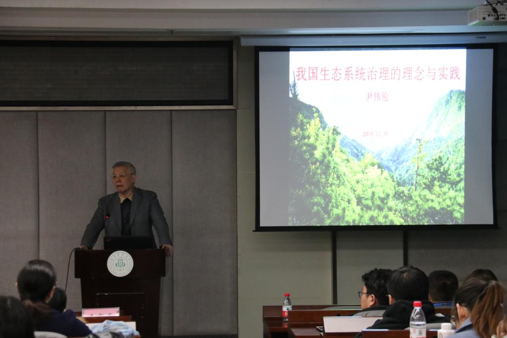 尹伟伦院士作题为《我国生态系统治理理论与实践》的报告,从生态系统整体的视角来思考生态环境治理问题,并以独到的见解、详尽的资料、生动的语言讲述新时代林业人应如何跳出传统林业的思维方式和评价体系,顺应时代发展地理解“绿水青山就是金山银山”。