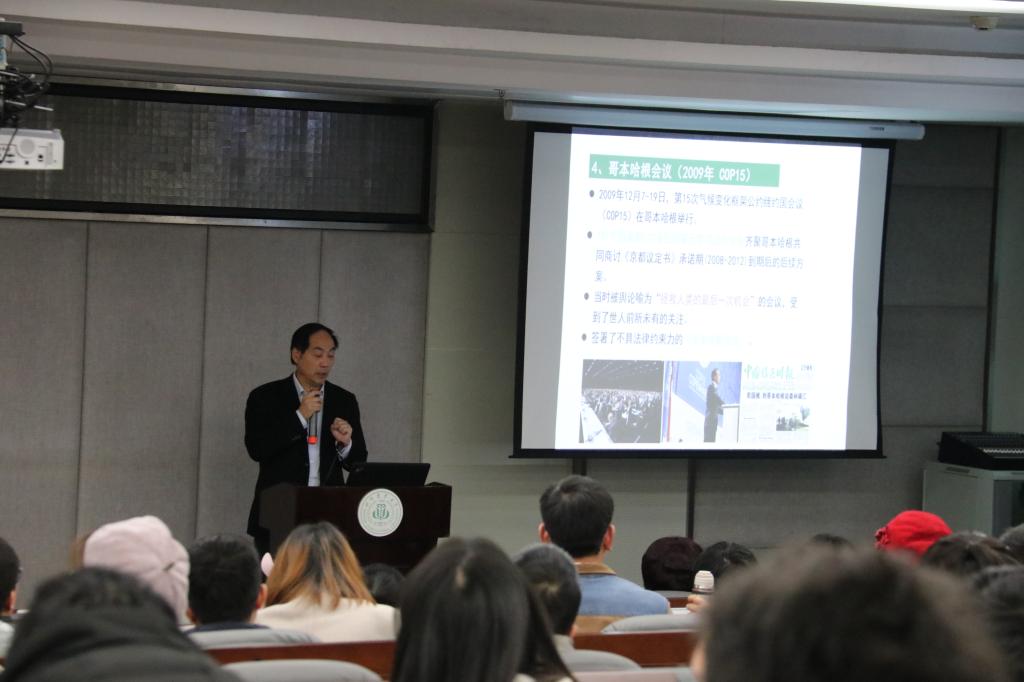 周国模教授通过报告《全球气候变化、低碳经济与林业碳汇》介绍了国内外相关研究的最新动态,并结合森林生态系统整体的服务功能和价值的相关理论与实践,探讨了在目前社会大背景下,如何实现森林碳汇货币化,促进绿水青山变成金山银山。