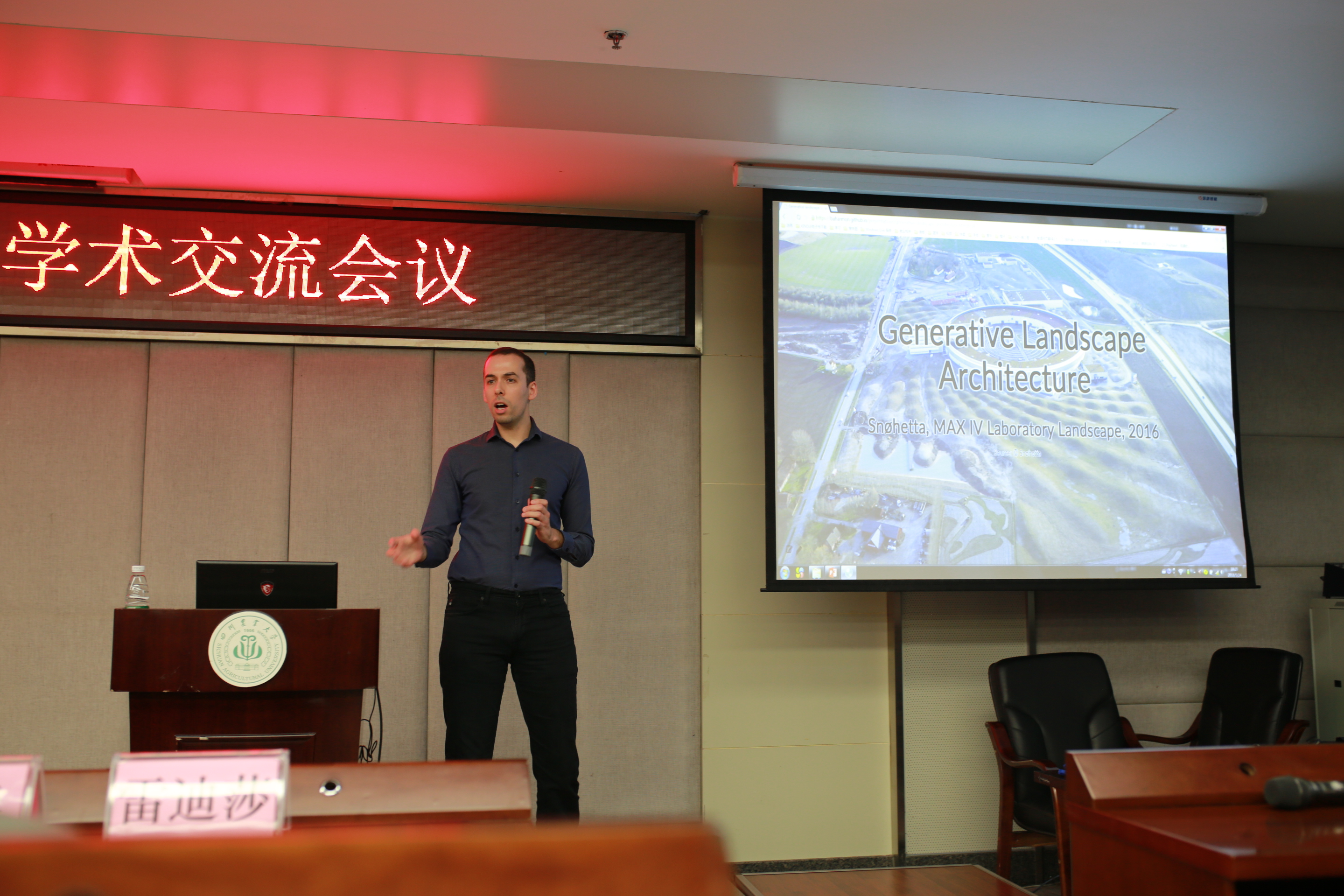 ②农业技术与3D打印;③自助建设;④艺术生成与设计;⑤地理信息系统;⑥数字景观建筑范例。体现了风景园林学科数字化景观最新研究成果。讲座后两位嘉宾耐心回答了同学提出问题,并与在场师生进行学术交流。