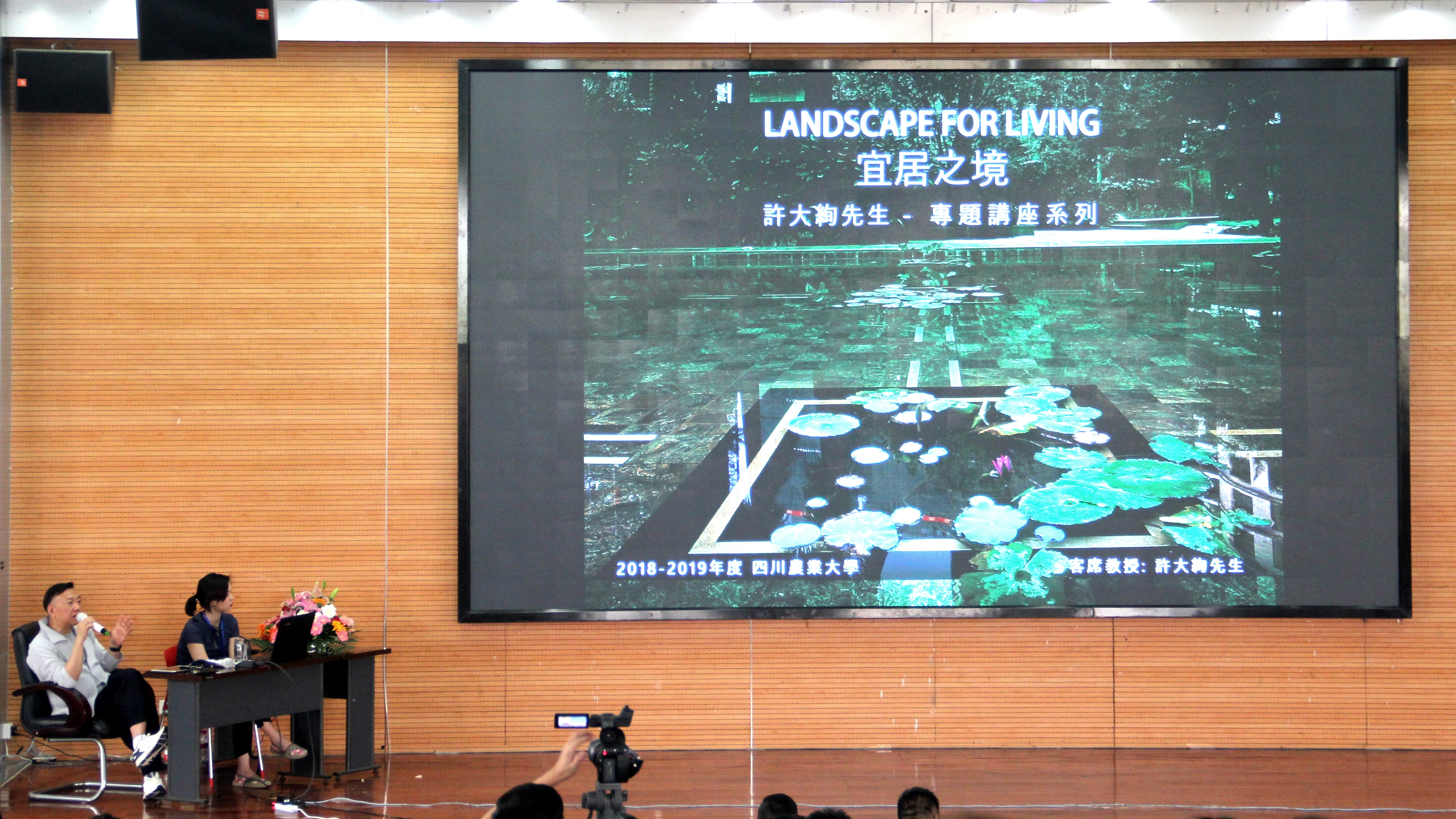 2018年4月18日下午,贝尔高林国际(香港)有限公司总裁兼执行董事、著名环境规划及景观设计师许大绚先生做客“企业高管讲堂”,分享“宜居之境”——环境设计从规划开始的讲座在成都校区二教报告厅举行,院长陈其兵教授主持讲座。