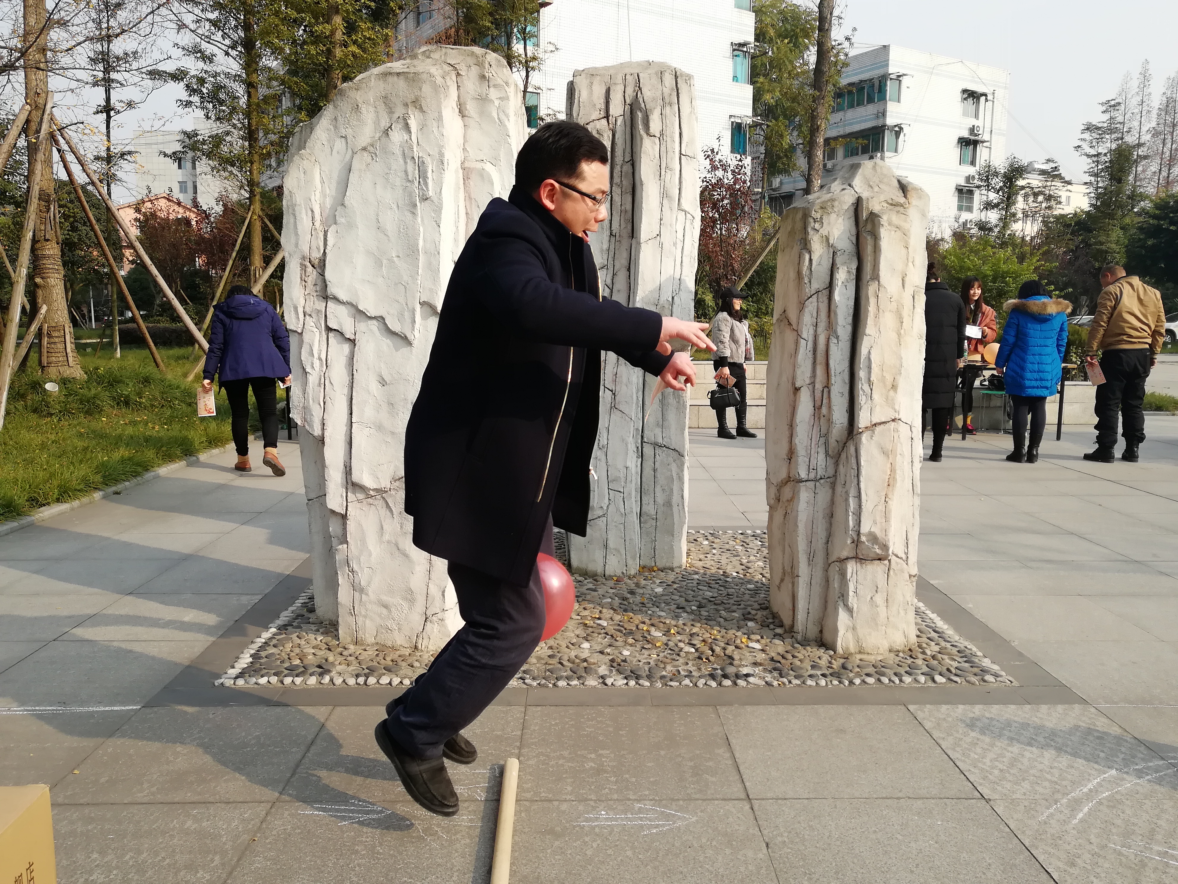 在暖暖的冬日阳光照耀下,红色热情的横幅,粉色温馨的气球将第五教学实验楼前的游园活动场地装扮得热闹而温馨!下午2:30,党政部门、风景园林系、园林系、环境设计系、实验中心工会组长带领会员们来到现场,欢快地投入到游园活动中。