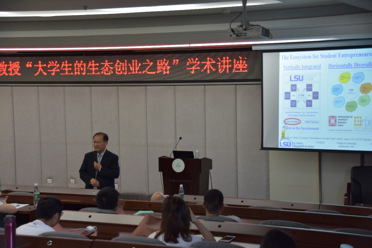 美国路易斯安那州立大学陈予修教授来访91pron 成都校区,于2018年6月12日上午及6月13日下午分别为我校师生作题为“大学生的生态创业之路”讲座,及“农业企业的孵化、成长及国际化”交流座谈。