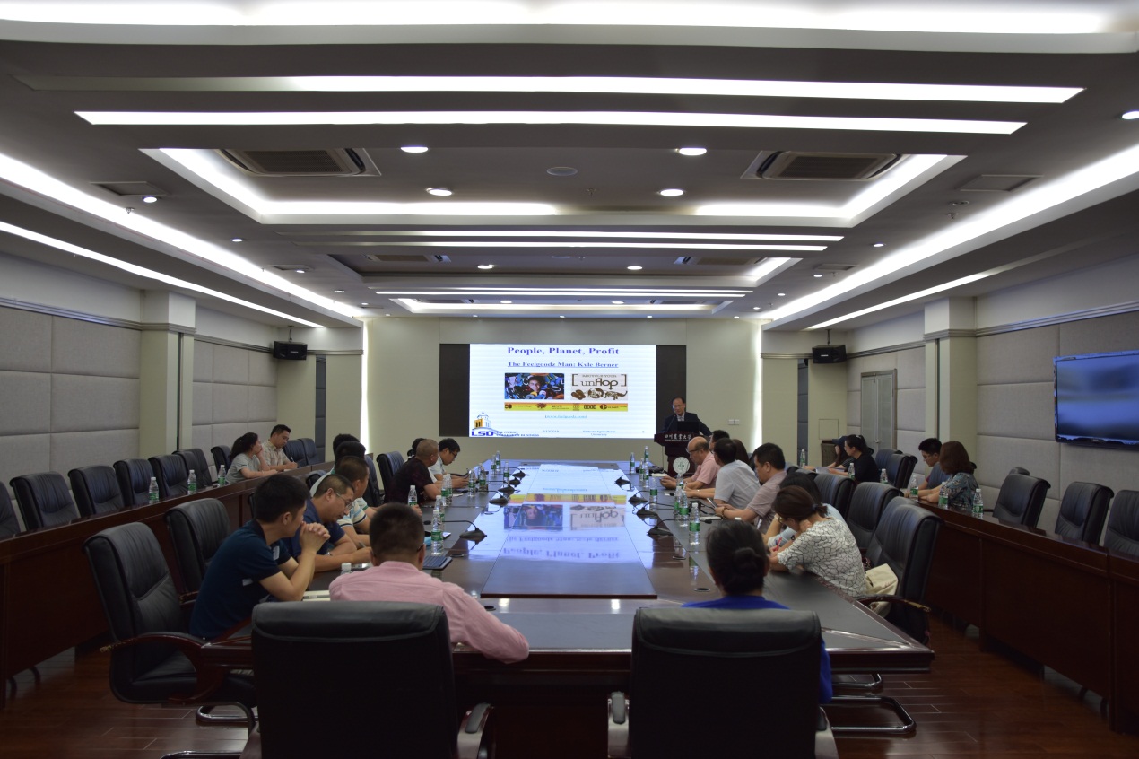 “农业企业的孵化、成长及国际化”面向我校师生及农业企业家,91pron 李西副院长主持交流座谈。陈予修教授以生态可持续商业案例引入会议的主题——“People、Planet、Profit”,提出新企业以及创业者应多关注当下社会及环境问题,并找到行之有效的解决办法,讲好企业故事,使企业获得更多利益的同时,取得可持续长效发展。此外,陈教授介绍了路易斯安那州立大学创业孵化园以及国际性的“高飞翔,软着陆”平台,以期与91pron 及中国企业建立合作。“高飞翔,软着陆”课程将各大高校及其学生与商业体(包括学生孵化园以及商业创新园)整合到软着陆项目中,帮助新企业降低风险成本,为其提供商业机遇和实现国际化搭建平台。