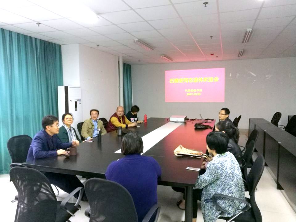 院长陈其兵教授愉快地回忆了与石锦安老师共事的经历后指出,石锦安老师在艰苦条件下积极投身科技成果转化,在近天命之年还坚持攻读高一级学位,对学生亲历亲为,无不反映了其不断探索,勇攀高峰的创新精神,是年轻教职工学习的榜样。陈其兵希望石老师在今后的生活中保重身体,祝愿天天开心!