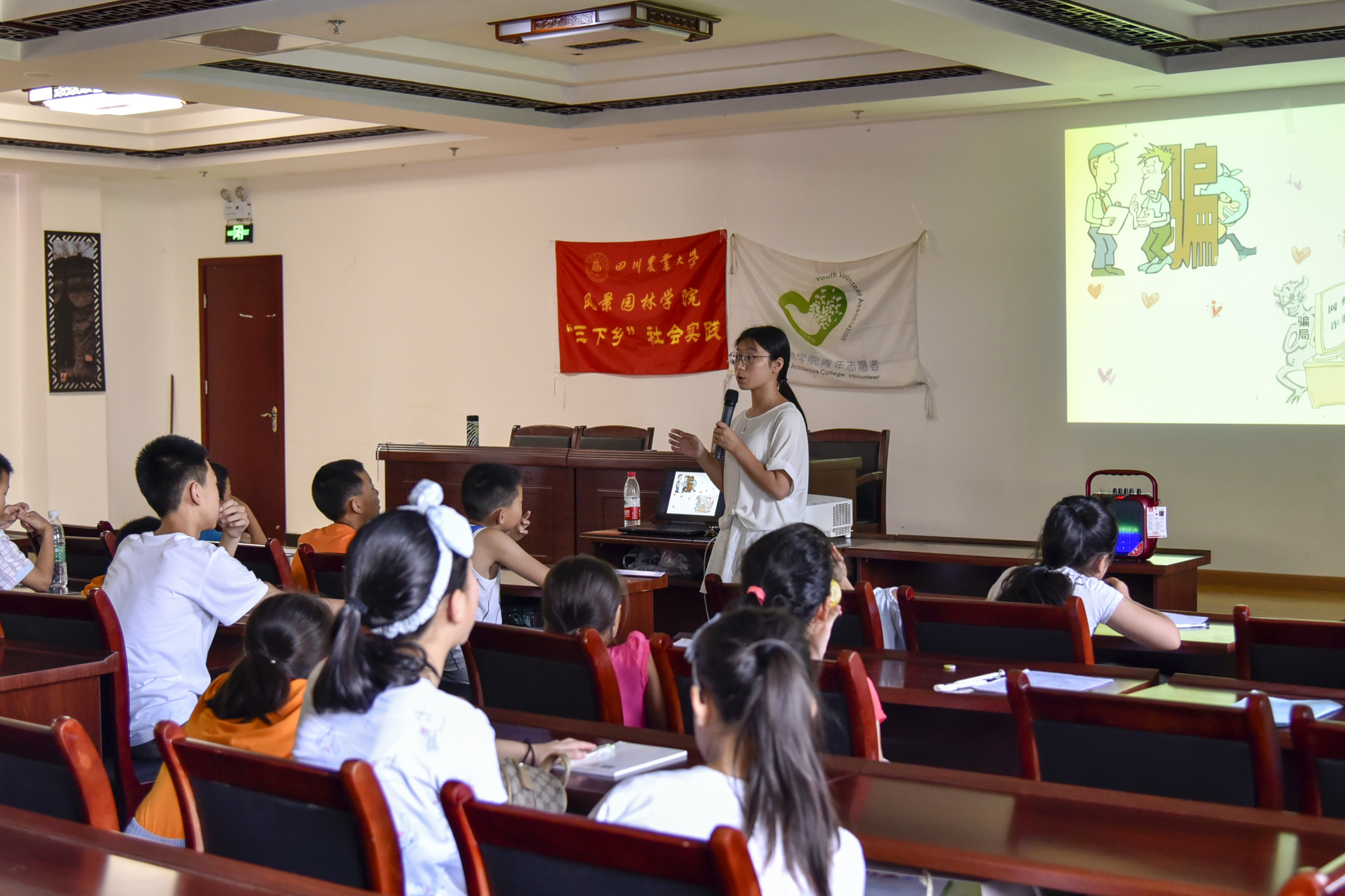 此次活动打破传统支教形式和内容,结合当地小学中高年级学生的受教育现状,为当地小朋友量身定做课程表, “老师,我们今天上什么课啊?”“老师,今天有手工课吗?”上课时间还没到,不少小朋友已经把老师团团围住,迫不及待要开始上新的课程了。说到要上英语课,不少小朋友顿时面露难色,英语老师欧阳慕莹考虑到了英语课的枯燥性,将英文歌、英语绕口令等孩子们感兴趣的内容融入教学中,带领小朋友们做自我介绍、唱身体部位歌、比赛念绕口令,在游戏与欢乐中,小朋友们逐渐抛却了对英语的恐惧感,争先恐后地举手发言。除了基础课程,安排防骗一类的实用课程也是极有必要的,据了解,当地存在有儿童被拐卖的现象,老师杨朝冰将自身经历引入课堂,和学生交流分享常见骗局,无形之中让他们有了自我保护的意识。
