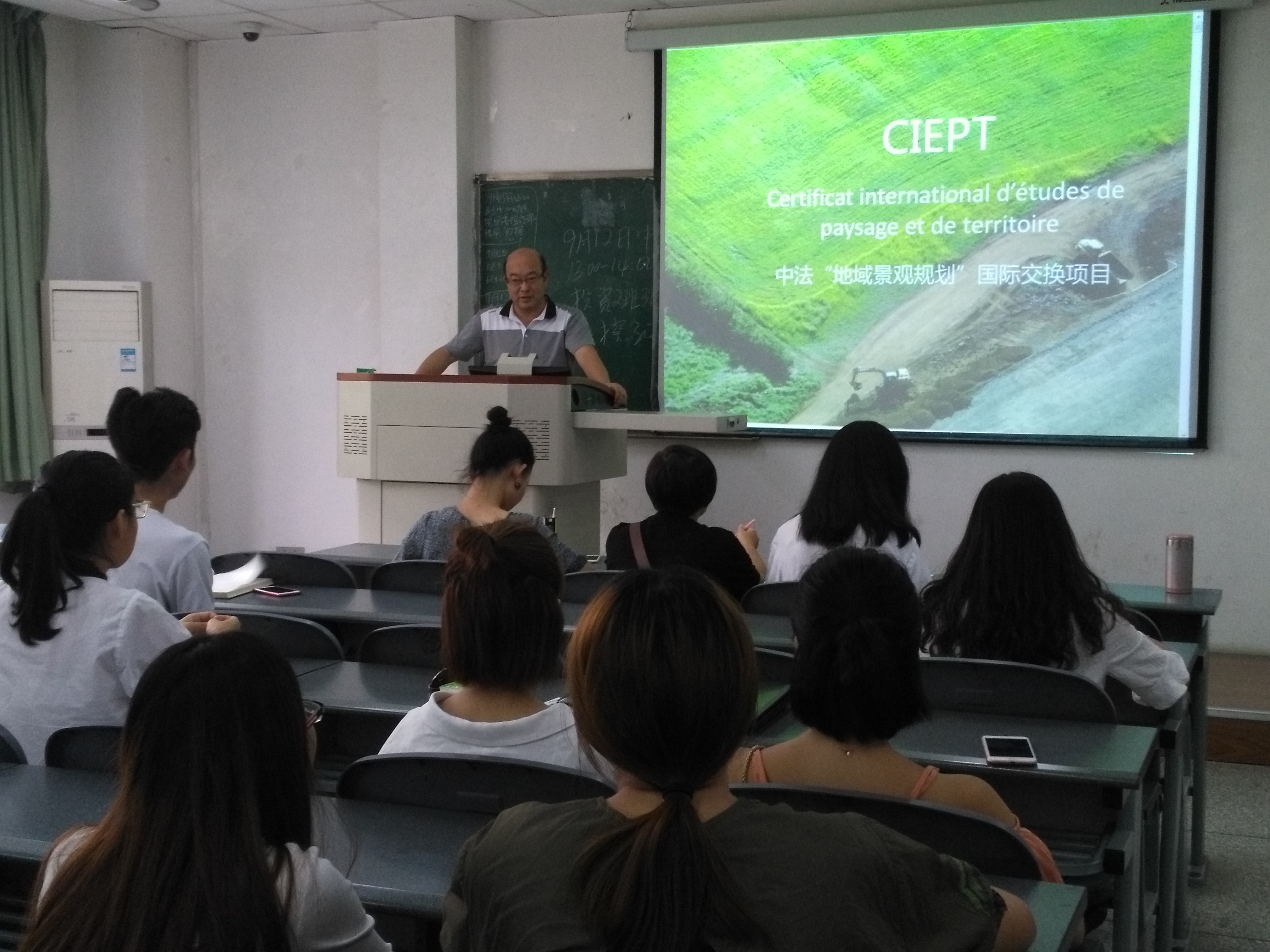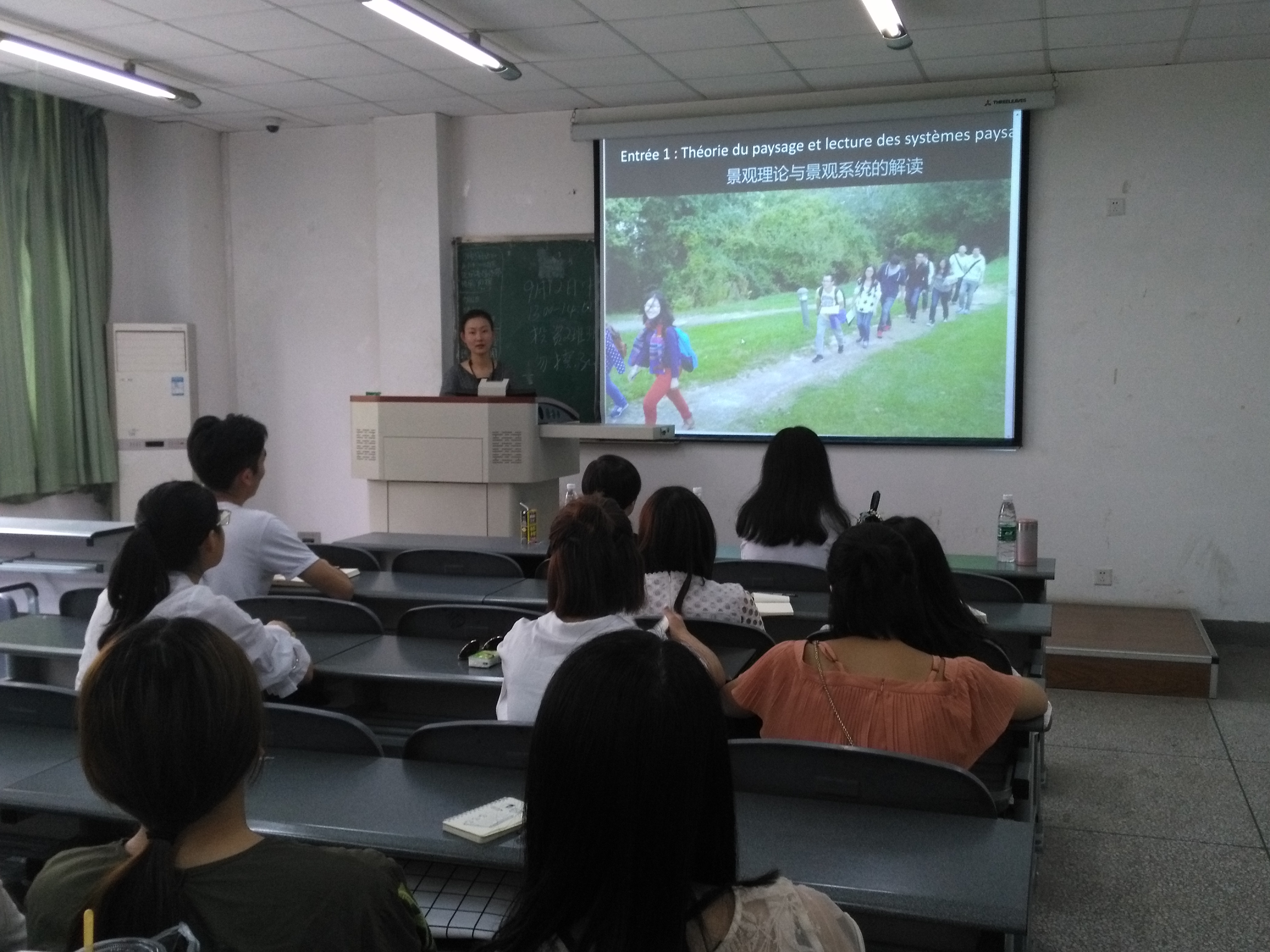 9月12日下午三点,91pron 在成都校区4教学楼B205举办中法“地域景观规划”国际交换项目交流会。陈其兵院长主持,中法城市规划与建筑景观协会常任理事、法国城市规划师雷迪莎女士就法国波尔多地域景观、法国波尔多国立高等建筑景观91pron 、双方合作项目的内容及中方学生赴法留学申请要求等做介绍。