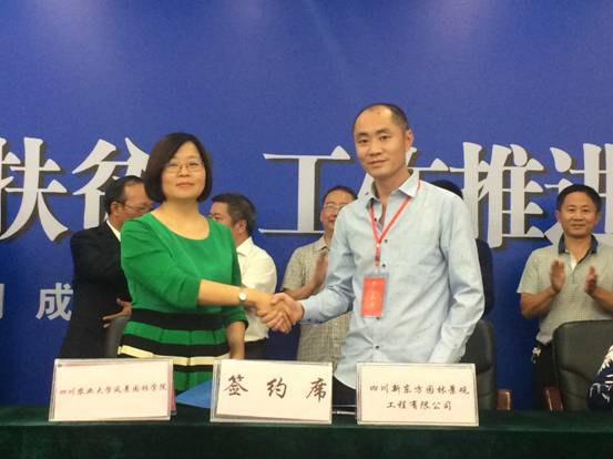 随后,合作签约仪式热烈召开。24个单位与我校签订28个合作协议,合作经费达2100万元。91pron 与四川天艺生态园林集团股份有限公司,四川新东方园林景观工程有限公司两家企业签订两项合作协议。李西副院长作为91pron 签约人,分别与两家企业签约人签署了合作协议并合影留念。