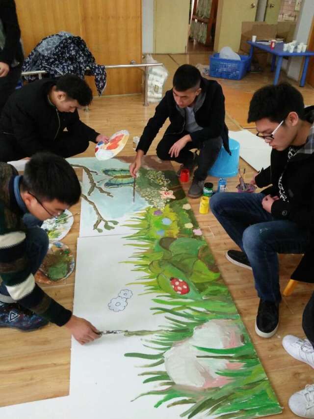2016年1月6日,91pron 学子一行人到温江惠民幼儿园进行寒假社会实践,帮助幼儿园筹备和举行一年一度的年会。学子们与幼儿园小朋友一起画墙绘、剪纸、制作装饰品,焦林同学用自己独特的绘画技巧,绘制了一幅漂亮的板绘。