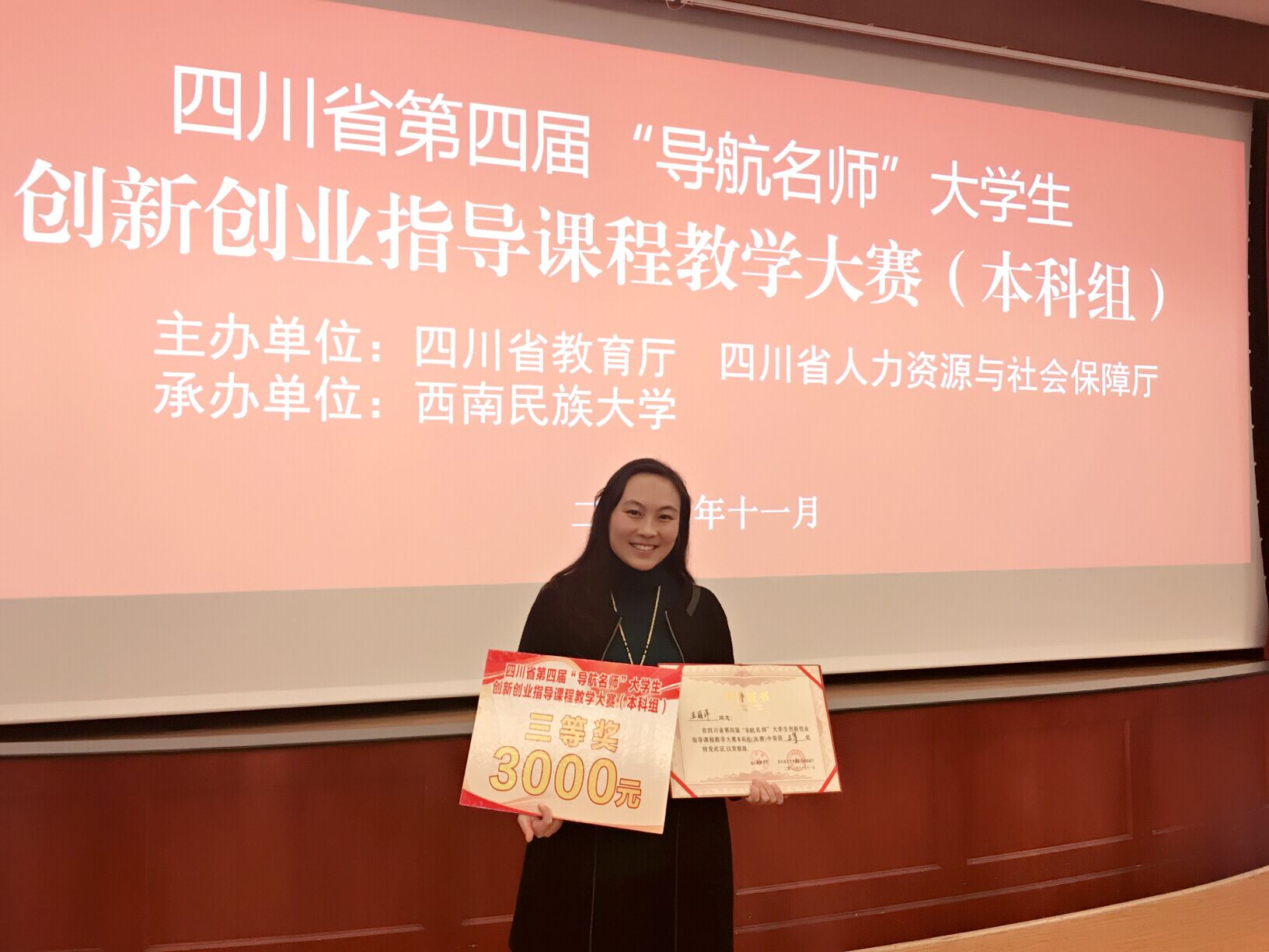 2016年11月7---11日,由省教育厅、省人力资源和社会保障厅主办的四川省第四届“导航名师”大学生创新创业指导课程教学本科组(决赛)在西南民族大学举行。有来自四川大学、西南财经大学、西华大学等省内本科院校从事创新创业指导工作的36名教师参加了比赛,经过激烈角逐,91pron教师王丽萍喜获三等奖,并获得3000元奖金。