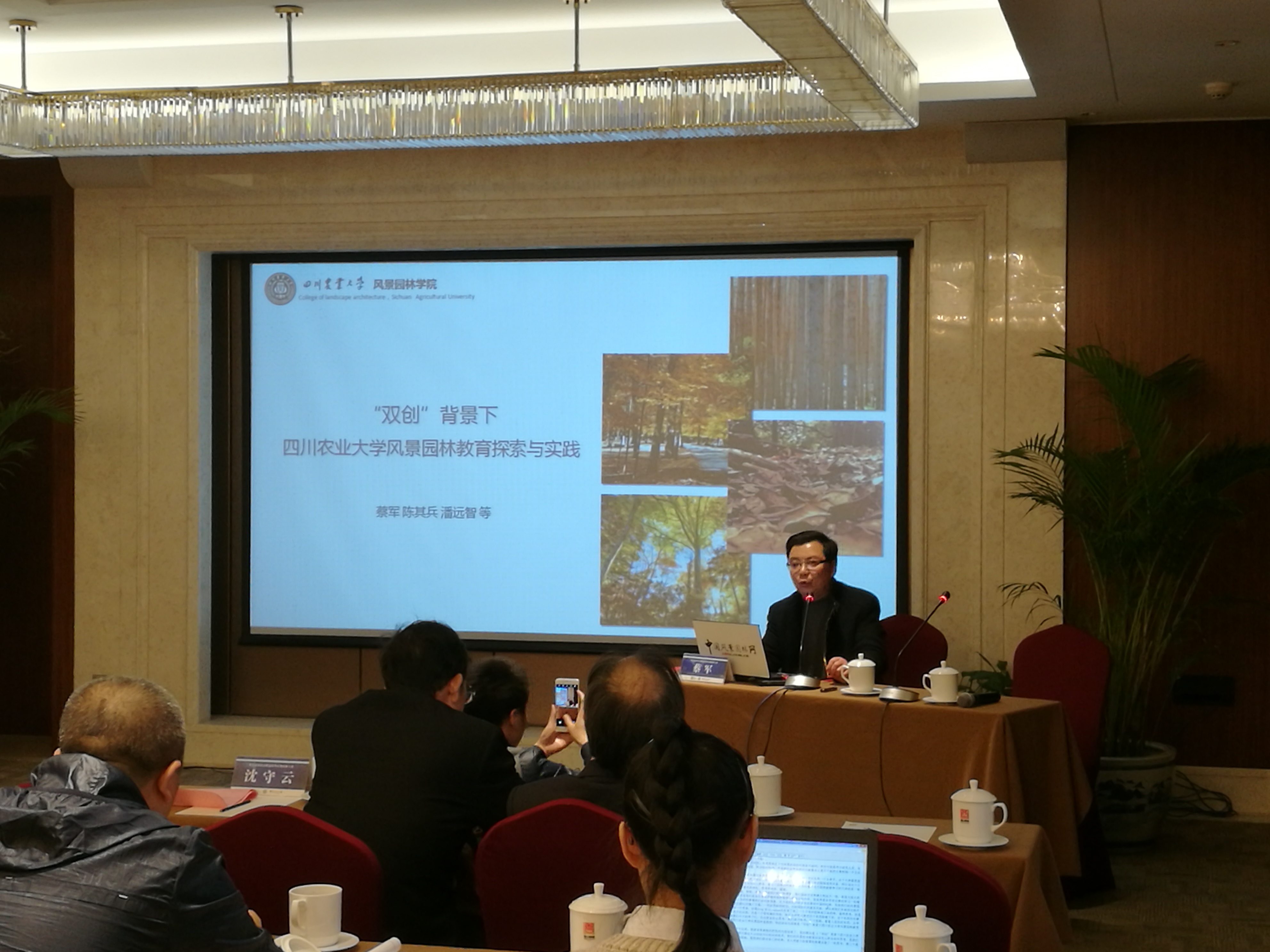 在园冶高峰论坛上,来自风景园林界的专家、学者和行业精英就“生态城市与新型城镇化、地产园林、亚洲园林教育、海绵城市与水生态水景观、生态园林企业战略转型、城市设计与绿色建筑”等进行了广泛交流。91pron 蔡军副教授在亚洲园林教育论坛做了《“双创”背景下91pron 风景园林教育探索与实践》的报告,以“师蜀地山水,营时代园林;树行业精英,谋绿色发展”开篇,从“91pron 设计公司+专业培养+实践基地”——“三平台”共融合的 “产学研”一体化人才培养模式、 “课程+竞赛+创业”——“三模块”互促进的人才培养体系、“91pron 设计公司+实践项目+学生自创企业”——“三结合” 的校企实践融合创新平台、“产学研”——“三协同”深度融合,师生共历练等四个方面进行了交流,得到与会嘉宾的热烈反响,提升了我校风景园林学科的影响力。