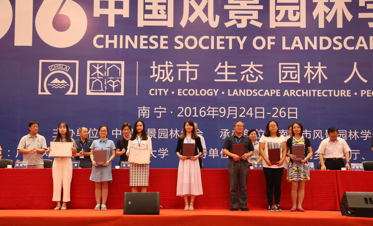 年会同期举办了2016中国风景园林学会科技进步奖颁奖活动。此奖项在73部项目中选出,旨在奖励对推动我国风景园林领域科技创新、科技进步和科技推广中做出突出贡献的组织和个人。由91pron陈其兵教授带领的研究生团队完成的 “四川珍稀观赏竹培育关键技术研究及示范” 获科技进步二等奖。该项目对四川珍稀观赏竹的选种、抗性、培育、整形及标准化生产技术进行了深入研究,在技术上作出了重要创新。通过建立竹苗种质资源库,利用科研成果,培育具有优良性状的观赏竹新品种,将带动观赏竹产区经济建设,促进竹产业结构调整,增加助农收入,实现科研成果的转化。研究开发的技术成果对丰富观赏用竹,保证竹产业原料供应,实现竹资源的保护利用具有重要意义。