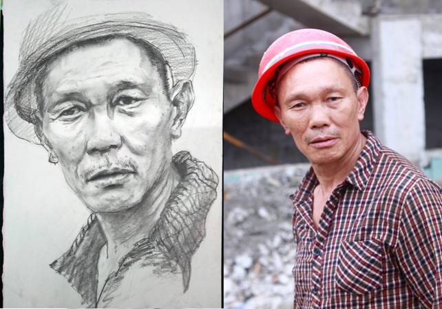 虽说画像不是什么贵重的礼物,但工人们拿到画像时都露出了满脸笑容,这正是团队的同学们最想看到的。一副画像,传递的是一份关怀、一份感激,能让他们感受到肯定与接纳。他们工作奔波劳累单调,但是他们仍然怀揣着一颗善良炽热的心,他们用汗水浇灌城市的花,用粗糙的手掌抚摸楼房的砖瓦,用宽厚的肩膀撑起我们的家.