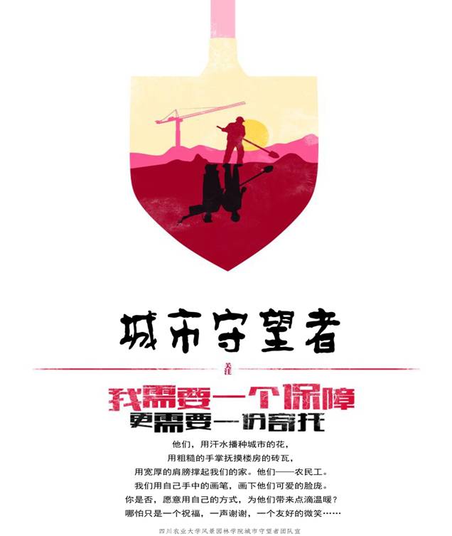 城市里有这么一群人,钢筋混凝土是他们的世界。他们背井离乡,从农村来到城市,带着思乡的苦楚,怀揣着对新生活的渴望,通过勤劳的双手努力,寻找新生活,他们是城市的建设者,更是守望者。