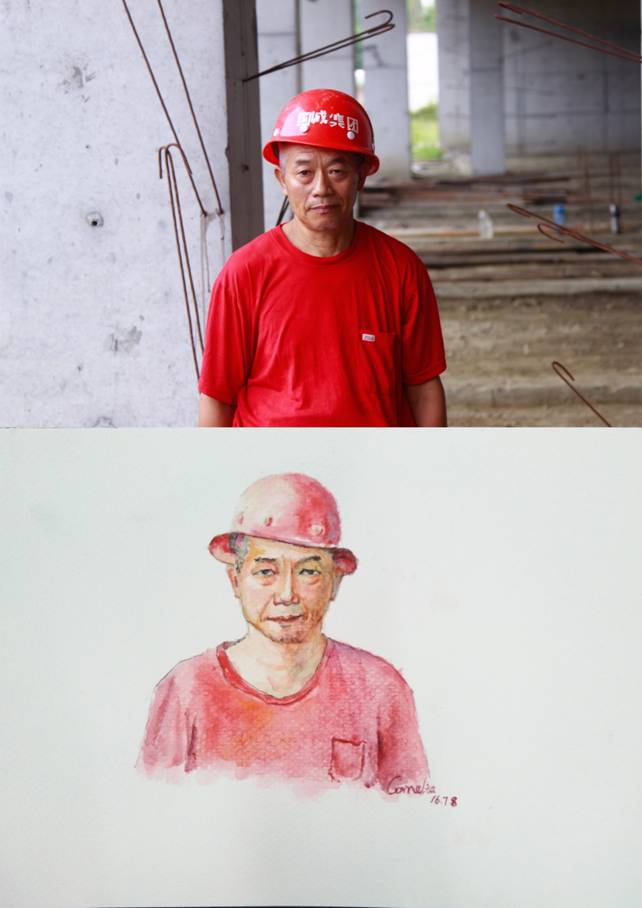 2016年6月21日,在工地负责人的带领下,团队来到了91pron 成都校区的一处工地。做好安全措施后,团队成员们走进了工地内,向工人们说明了来意。征得工人们同意后,团队成员与他们进行了简单的交谈和采访并为他们拍摄了照片作为后期绘画的素材。