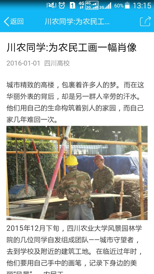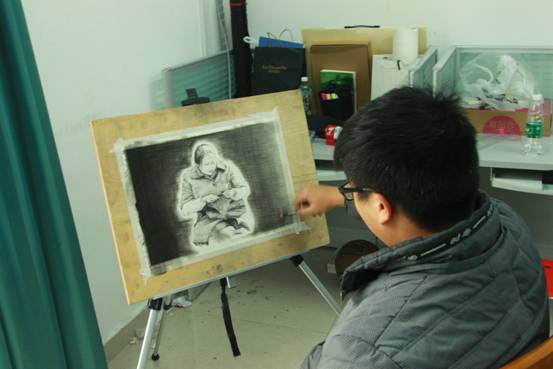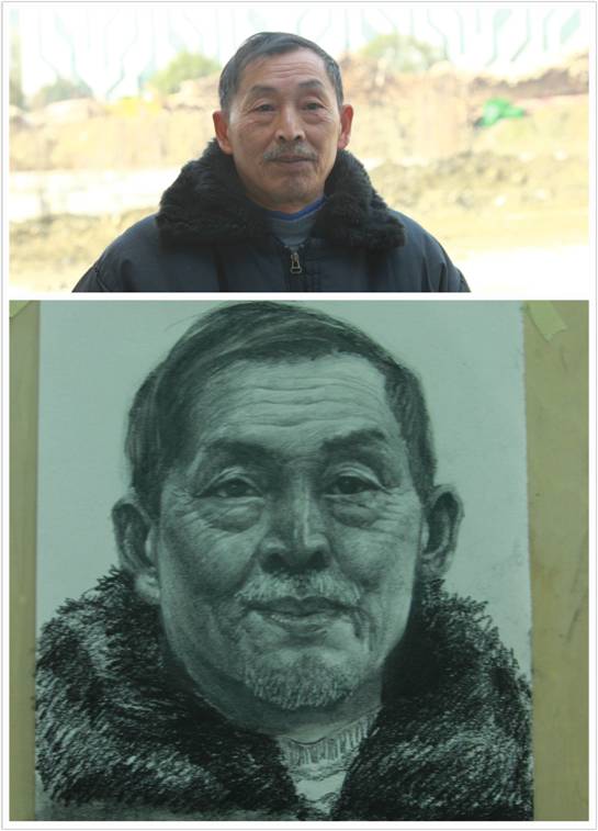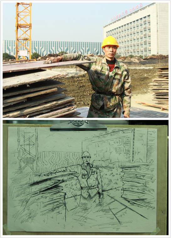 农民工是我们城市的建设者,更是城市守望者,学生团队来到成都校区近期正在施工工地上,找到工人食宿区,征得了几位农民工人同意并为他们拍摄了照片作为后期绘画的素材。