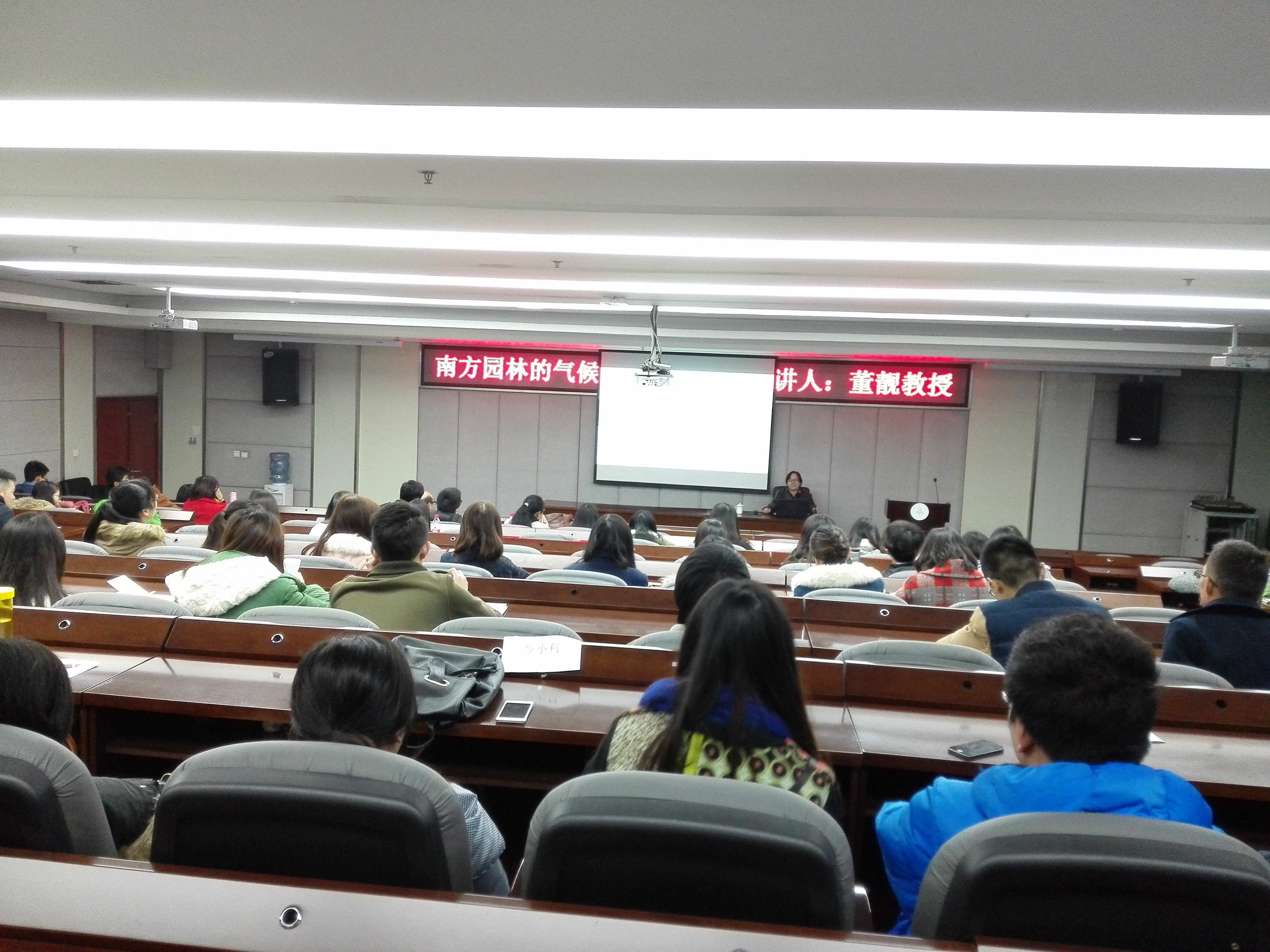 陈其兵院长对董靓教授的到来表示热烈的欢迎,并介绍了我校风景园林学科的基本情况。董靓教授就其研究的南方园林的气候适应性设计进行了较为详细的讲解,以人作为设计核心,考究人类活动在风景园林中的作用,从小尺度到大尺度,从小气候到生态环境,分层次、多方向地介绍了各个尺度的小气候研究的方法。董靓教授以其自身设计经验授课,赢得了全场师生的热烈掌声,91pron师生与董靓教授还就专业问题进行了探讨。