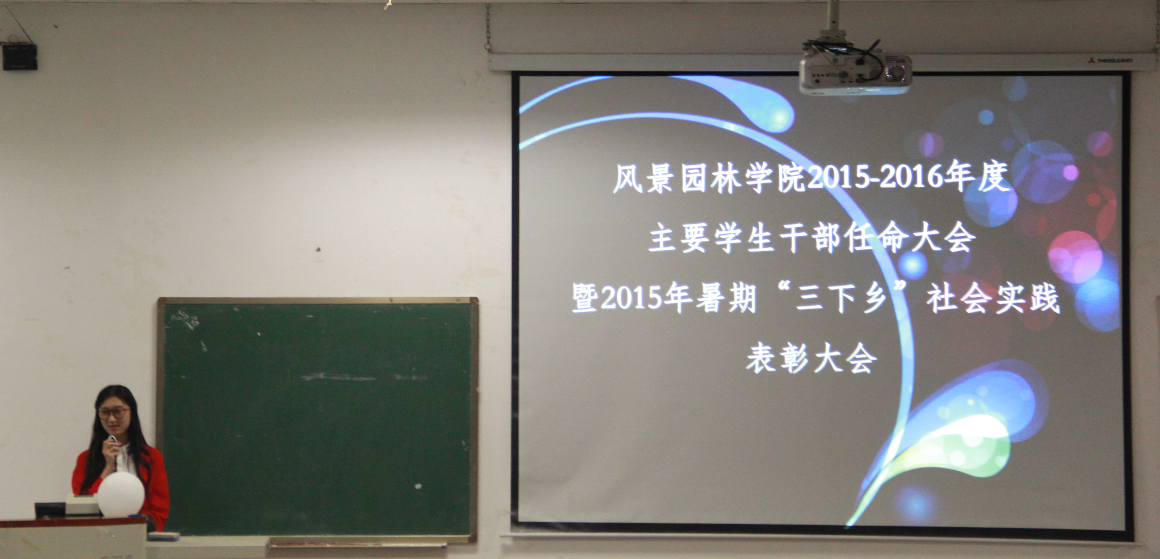 2015年10月20日晚6时,91pron 2015~2016年度主要学生干部任命大会暨2015年暑期“三下乡”社会实践表彰大会于4A202顺利开展。