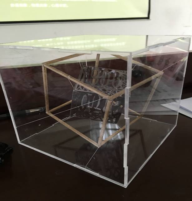 入围本次大赛决赛的六副作品,同学们将制作精美的ppt结合实体模型详细的介绍本队的装置艺术。蒲天村和潘翔老师为作品进行了专业点评,对同学们在美观,实用性,科技性,创新性以及成本方面所做的分析表示了肯定,并对学生的未来发展给予厚望。获得一等奖和二等奖的作品将送学校有关部门,经同意后会在校区里建成一个小景观。
