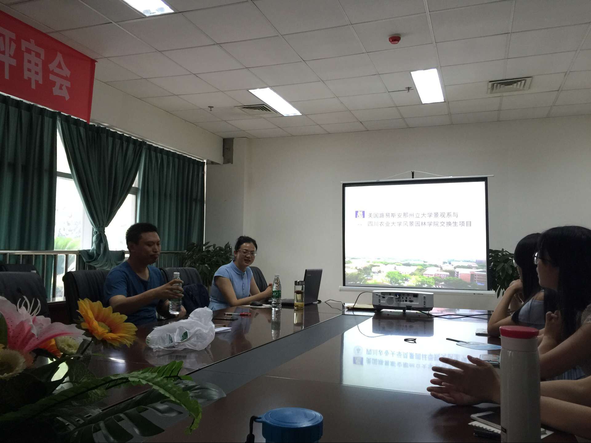 在班主任李洋老师的组织下,与郭老师的交流分为三个方面,一个是美国路易斯安那州立大学景观系的情况,第二是“老虎学校”与我校的交流项目,最后是介绍如何申请公派路易斯安那州立大学交流。条理清晰,逻辑分明。