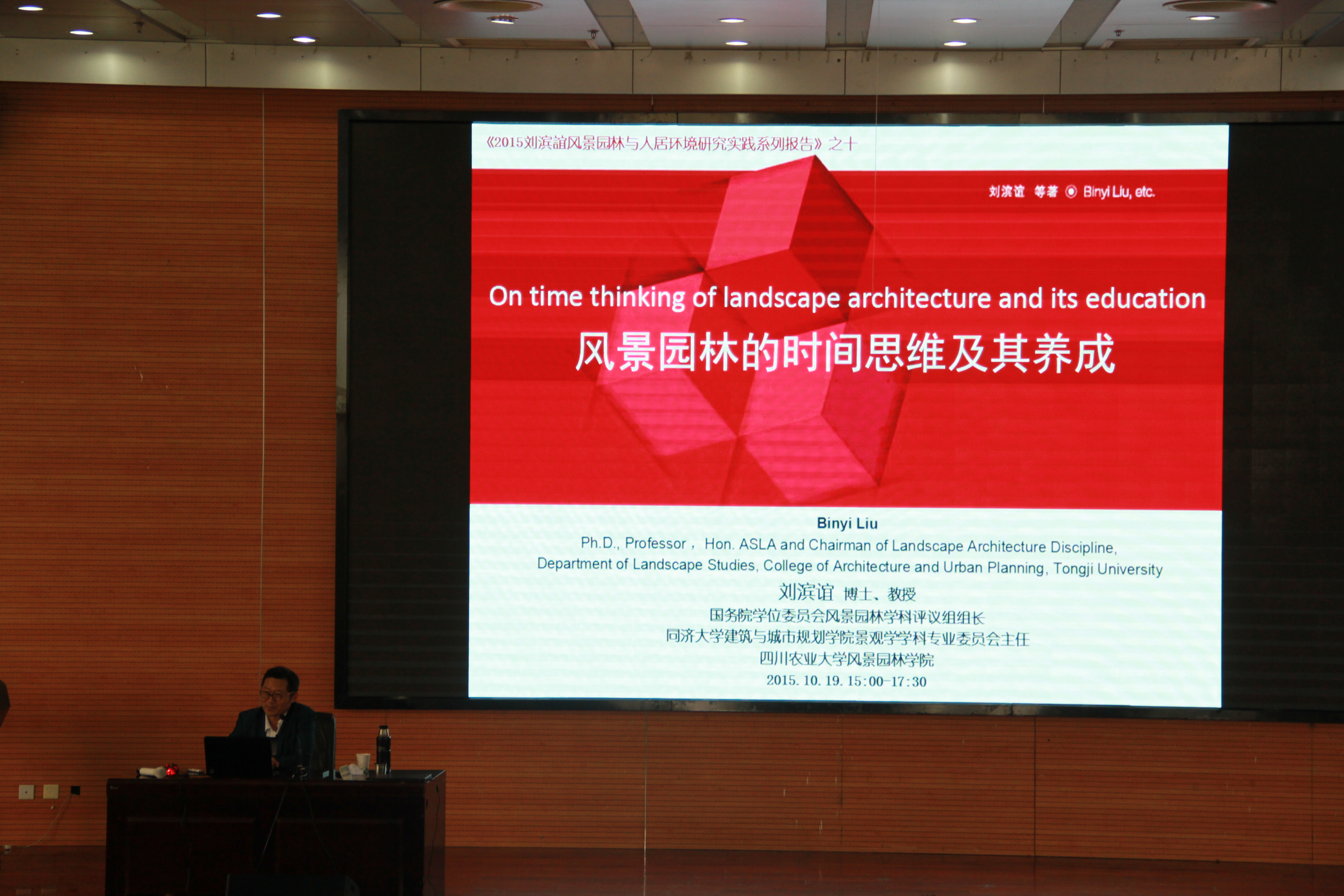 2015年10月19日午3时,91pron 有幸请来了国务院学位委员会风景园林学科评议组组长、同济大学建筑与城市规划91pron 景观学学科专业委员会主任刘滨谊教授及博士,来我校二教报告厅进行学术讲座。