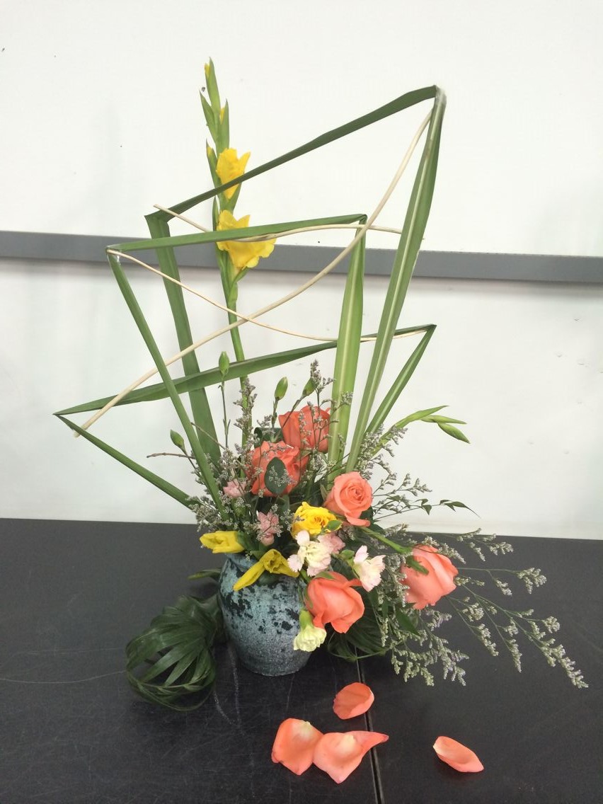 比赛开始,各参赛小组在听完比赛规则并按桌上编号就坐后,便开始了对所给花材的构思,处理以及设计。经过两个小时的比赛,各小组完成了他们的作品,并在风景园林协会工作人员的带领下把自己的作品摆放到5教708教室。当天晚上,经过专业老师的评审,其中30组作品被选入大众投票环节。