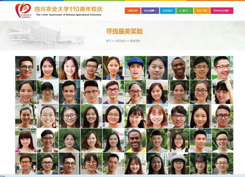 110周年校庆官网,用他们的微笑感染更多的人,也让川农110周年校庆活动更加有温度,有回忆,更有特色。后期“smile to 110th of SICAU”团队将会持续在校内对学校师生员工进行拍摄,并充分利用网络新媒体等途径宣传活动,征集海内外校友笑脸,不断更新至校庆官网,让川农学子都能广泛参与其中,为校友和师生留下美好的回忆。团队指导老师陈中桂副书记说“发现美,记录美,塑造美,追寻美是我们91pron