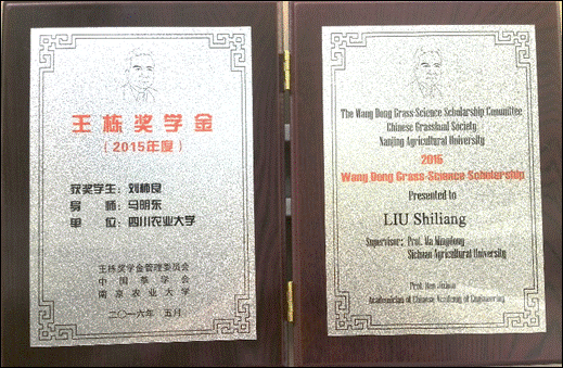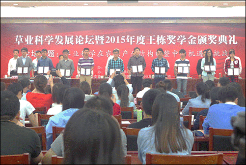 5月6-8日,91pron 博士生刘柿良受国家王栋奖学金管理委员会、中国草学会和南京农业大学草业91pron 的邀请,赴南京参加2015年度“王栋奖学金”颁奖典礼暨草业科学发展论坛。该奖项由中国工程院院士任继周先生首倡,为纪念我国草业科学奠基人王栋先生而设立的唯一面向全国在校研究生的草业奖学金,该奖项代表了我国草业系统中学生的最高荣誉。2015年度共有来自中国农业大学、兰州大学、北京林业大学、西北农林科技大学、南京农业大学、91pron 等6所高校的10名研究生(硕士4人,博士6人)获得该奖项,刘柿良同学也是91pron 首位获此殊荣的研究生。