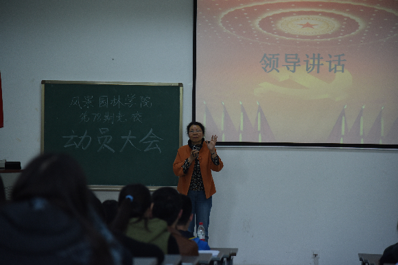 陈中桂老师对这期入党积极分子做了动员,她强调作为追求进步的大学生,要坚持党的四项基本原则,把“全面建设小康社会、全面深化改革、全面依法治国、全面从严治党”作为自己的责任和奋斗目标,严格按照党章要求,使自己早日加入中国共产党,为“两个百年”目标做出自己的贡献。