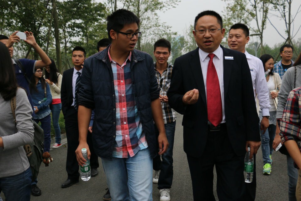 彩景园林公司总经理曾寿方、副总经理何伟和公司全体中层管理人员与到访的同学进行了座谈。曾总谈到,本次活动是彩景园林与学校进行深度校企合作的重要尝试,希望各位同学以本次大赛为契机,上好职场的第一课,顺利实现从学校到职场的角色转变。我校1997级校友、现彩景园林公司副总经理何伟分享了自己十余年的园林从业经历。他说,中国的园林行业是一个前途广阔的行业,同时也是一条充满艰辛的路程。他要求同学们在职业发展的道路上学会沉淀,步步稳扎,夯实基础,切忌好高骛远和求胜心切。其他管理人员也先后介绍了公司架构情况并针对同学们关心的问题进行了答疑。