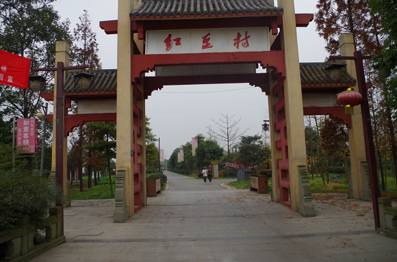 此次活动的最后一站是什邡市的灾后重建示范村红豆村。在灾后重建过程中,该村在党委政府的正确领导和北京市委市府的无私援建下,改变了当地长期的生产模式,打造了以现有千年红豆树为主题的特色旅游产业村。村子内环境优美空气清新,同学们争相参观了月老祠,红豆广场,爱情诗林等景点。村子里的公共设施建设十分完善,有专供留守儿童集体学习的地方,环境非常温馨。让同学们感受到了当地政府对于儿童的关爱。
